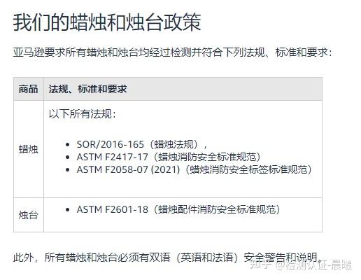 ASTM F2058 - 07 (2021)(蜡烛消防安全标签标准规范):明确了蜡烛安全标签的内容与格式。标签上 “远离易燃物”“放在儿童接触不到的地方”“燃烧时有人看管” 等必要安全信息和警告缺一不可,而且必须使用英法双语,方便不同消费者了解。这样,英语区和法语区的消费者都能清晰知晓使用蜡烛的注意事项,降低使用风险。